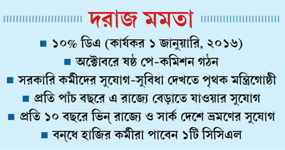 দু’দিন আগে কেন্দ্রীয় সরকার ৬% মহার্ঘ ভাতা (ডিএ) ঘোষণা করায় ঘরে-বাইরে তাঁর উপর প্রবল চাপ তৈরি হয়েছিল। কারণ রাজ্য ও কেন্দ্রীয় সরকারি কর্মীদের ডিএ-র ফারাক এর ফলে বেড়ে দাঁড়িয়েছিল ৫৪%-এ। আর কোনও রাজ্যে ফারাকটা এত বেশি ছিল না। সেই চাপের মুখে রাজ্য সরকারি কর্মীদের তুষ্ট করতে শুক্রবার ১০% ডিএ ঘোষণা করে দিলেন মুখ্যমন্ত্রী মমতা বন্দ্যোপাধ্যায়।