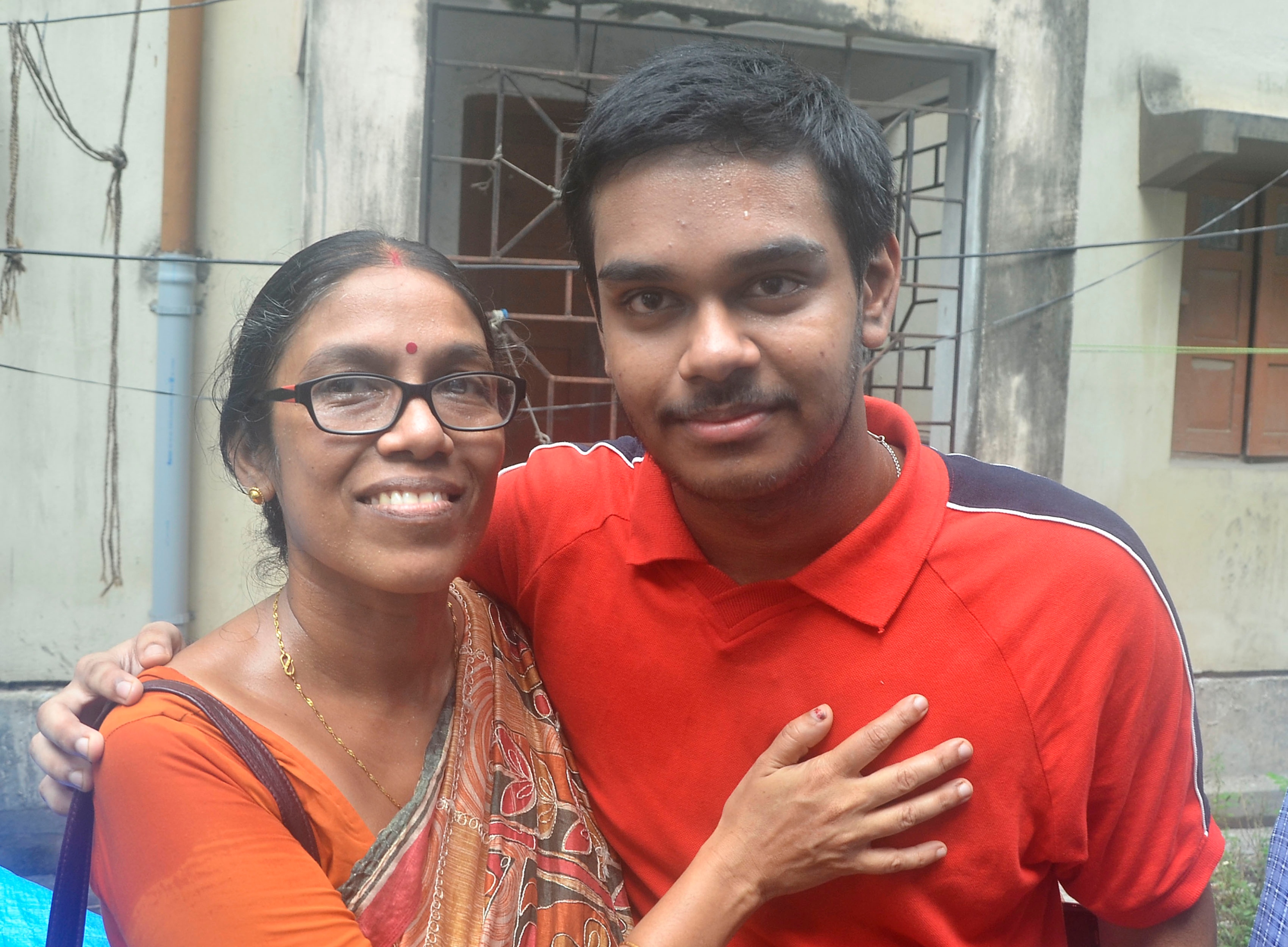 মায়ের সঙ্গে মেডিক্যাল জয়েন্টে প্রথম চন্দ্রচূড় মন্ডল। নিজস্ব চিত্র।