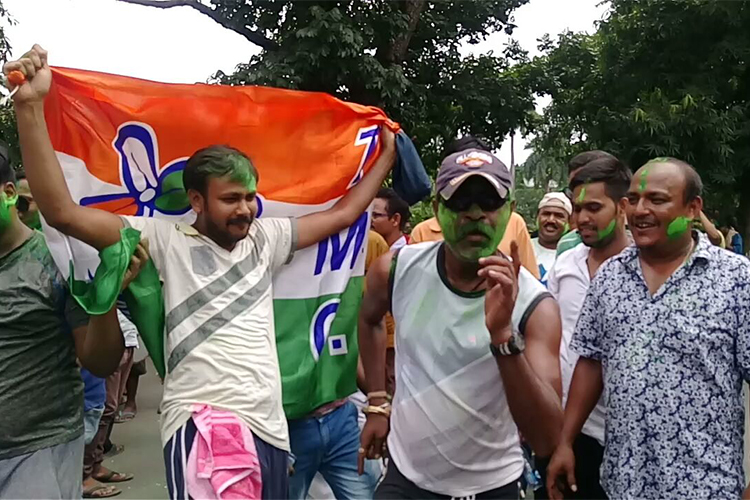 মহেশতলায় তৃণমূল সমর্থকদের উল্লাস। —নিজস্ব চিত্র।