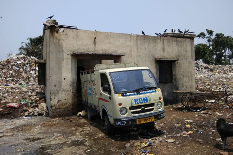 ভদ্রেশ্বরের ভাগাড়। এই মিনিডোরে ভ্যানেই ছিল একাধিক মৃত গবাদি পশু। —নিজস্ব চিত্র।