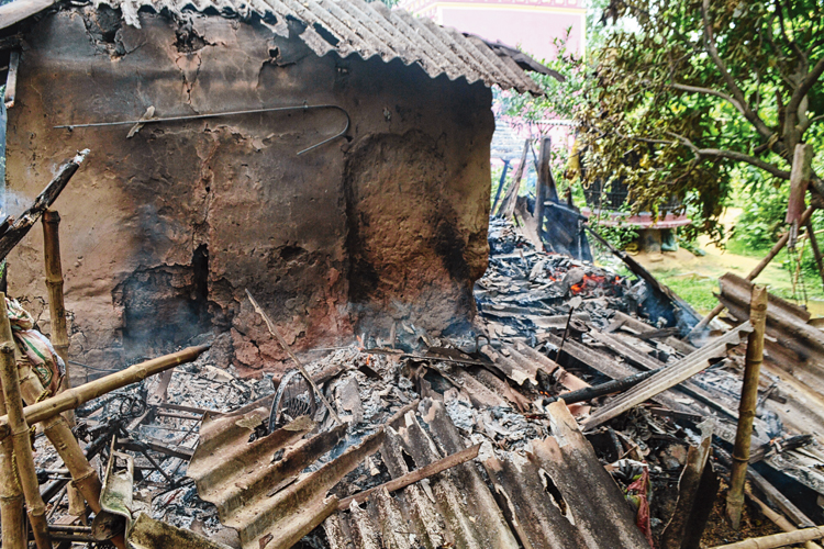 ক্ষোভের-আগুন: জ্বলছে এক অভিযুক্তের বাড়ি। ছবি: দীপঙ্কর দে