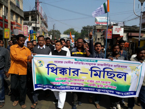 পশ্চিম মেদিনীপুরে জেলা তৃণমূল কংগ্রেসের মিছিল। নিজস্ব চিত্র।