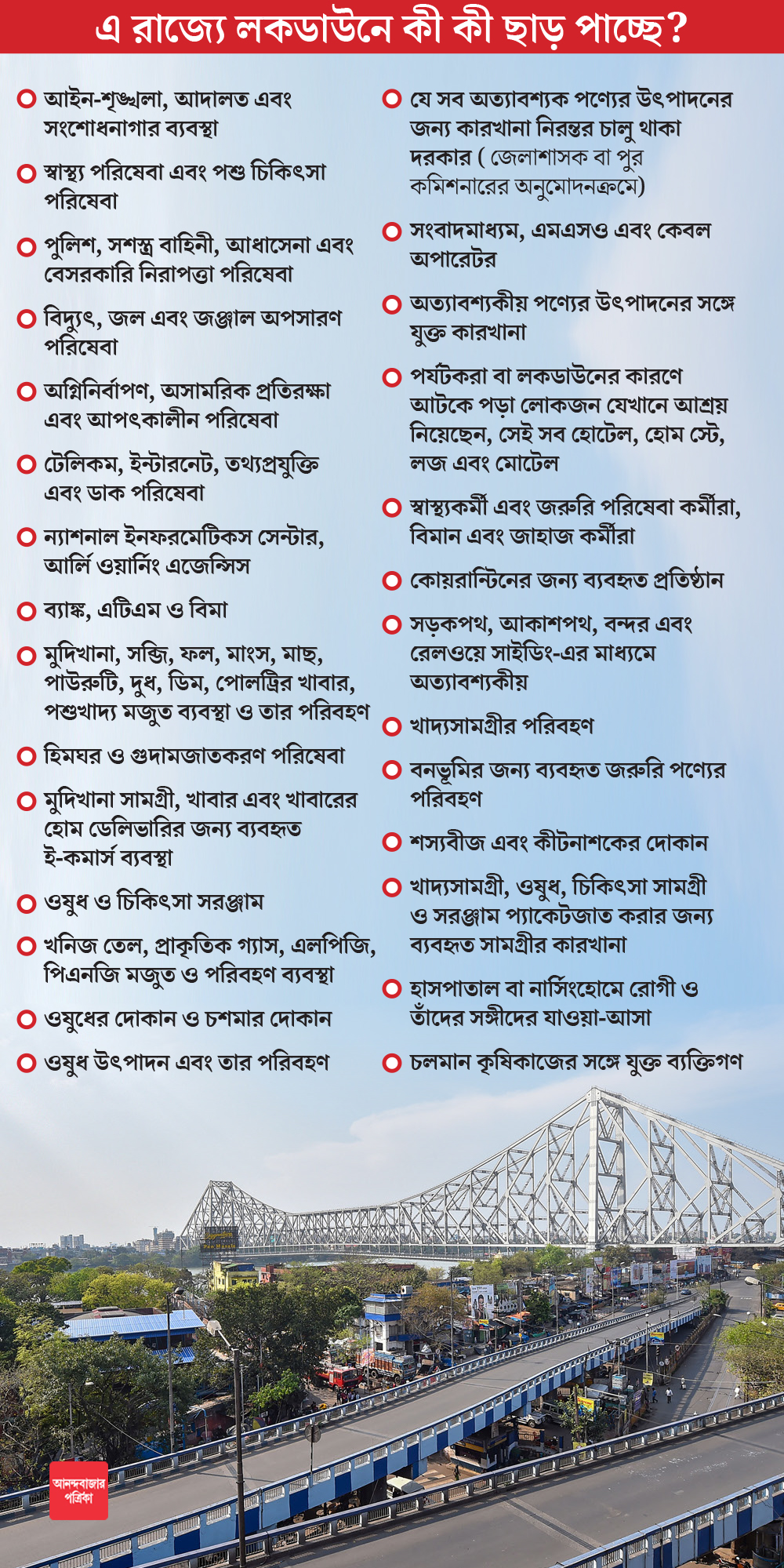 দেখে নিন এ রাজ্যে কী কী ছাড় পাচ্ছে লকডাউনের আওতা থেকে: