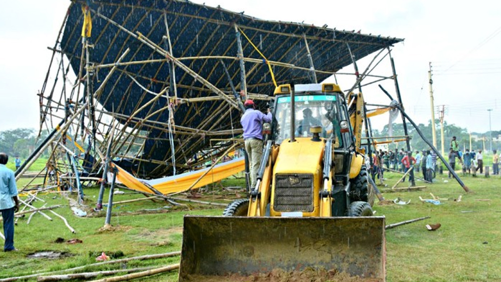 পৌষমেলার মাঠে পাঁচিল তোলা নিয়ে জল গড়িয়েছে অনেক দূর। নিজস্ব চিত্র।