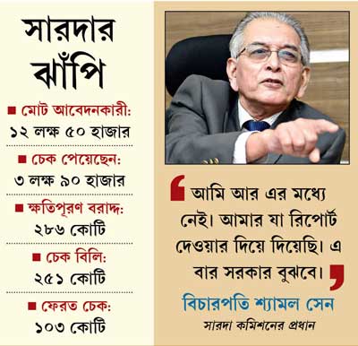 শ্যামল সেন কমিশন সূত্রে পাওয়া হিসেব অনুযায়ী, টাকা ফেরত চেয়ে আবেদন করেন সারদার মোট সাড়ে ১২ লক্ষ আমানতকারী। গোড়ায় ৫ হাজার টাকা পর্যন্ত যাঁরা জমা রেখেছিলেন, তাঁদের নাম বাছাই করে টাকা ফেরত দেওয়া হয়। এর পর দফায় দফায় ১০, ১৫ ও ২০ হাজার টাকা পর্যন্ত আমানতকারীদের বাছাই করা হয়েছে। সব মিলিয়ে সংখ্যাটা ৪ লক্ষ ৯৮ হাজার ৩৪৫। ক্ষতিপূরণ বাবদ সরকার মোট ২৮৬ কোটি বরাদ্দ করেছিল। চেক বিলি হয় ২৫১ কোটির।