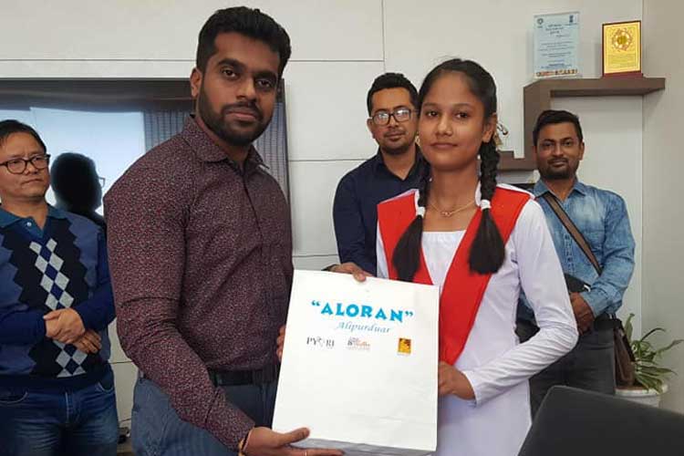 একটি অনুষ্ঠানে মেয়েদের হাতে পুরস্কার তুলে দিচ্ছেন আলিপুরদুয়ারের জেলাশাসক নিখিল নির্মল।