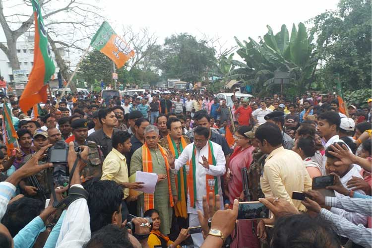 এ দিন হুগলি জেলারই ডানকুনিতে বিজেপির ওবিসি মোর্চার একটি বৈঠক ছিল। দলের রাজ্য সভাপতি দিলীপ ঘোষ, মুকুল রায়, জয় বন্দ্যোপাধ্যায়রা প্রথমে সেখানেই গিয়েছিলেন। সেখানেই খবর পৌঁছয় যে, গুড়াপে সভা ভেস্তে গিয়েছে। এই খবর পাওয়ার পরেই পুলিশ সুপারের অফিস ঘেরাও করার সিদ্ধান্ত নেন বিজেপির রাজ্য নেতৃত্ব। ডানকুনি থেকে সোজা কামারকুণ্ডু চলে যান তাঁরা। হুগলির (গ্রামীণ) পুলিশ সুপারের অফিসের সামনে বিক্ষোভ শুরু করেন। এই কর্মসূচি যে নেওয়া হতে পারে, তার কোনও আভাস আগে থেকে ছিল না। তাৎক্ষণিক সিদ্ধান্তের ভিত্তিতেই পুলিশ সুপারের অফিস ঘেরাওয়ের সিদ্ধান্ত নেওয়া হয়। তাতেও কিন্তু কামারকুণ্ডুতে জমায়েতের চেহারা খারাপ হয়নি রবিবার।
