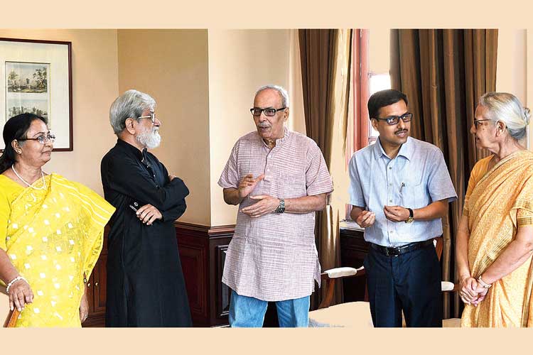 বিচারকমণ্ডলী: বেগম আকতার কামাল, বিভাস চক্রবর্তী, শীর্ষেন্দু মুখোপাধ্যায়, অংশুমান কর এবং উমা দাশগুপ্ত। ছবি: সুমন বল্লভ