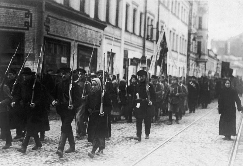 পেত্রোগ্রাদের রাস্তায় সেনাবাহিনীর কুচকাওয়াজ। ছবি: গেটি ইমেজেস।