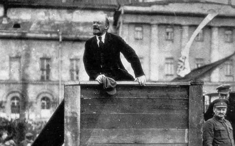 শ্রমিকদের উদ্দেশে বক্তব্য রাখছেন লেনিন।