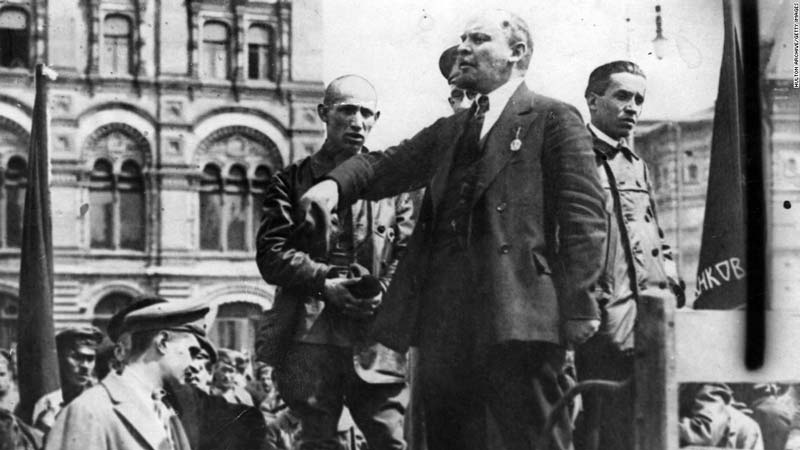 মস্কোর একটি সভায় বক্তৃতা দিচ্ছেন লেনিন। ছবি: গেটি ইমেজেস।