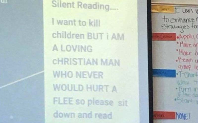 শিক্ষক লিখেছেন, ‘‘চুপ করে পড়ো... আমি শিশুদের হত্যা করতে চাই, কিন্তু আমি এক জন খ্রিস্টান এবং কখনও কোনও ব্যক্তিকে আঘাত করি না। তাই চুপ করে পড়া শোনো।’’ প্রিয় শিক্ষকের কাছ থেকে এমন মন্তব্য আশা করেনি কোনও পড়ুয়াই। ভয় এবং আতঙ্কে চুপ করে যায় সবাই। প্রোজেক্টর স্ক্রিনে ভেসে ওঠা লাইনগুলি তখন গোপনে মোবাইল বন্দি করে ফেলেছে এক পড়ুয়া। ক্লাস শেষ হতেই তুমুল হইচই পড়ে যায় স্কুলে। শিক্ষকের এমন আচরণে হতবাক স্কুল কর্তৃপক্ষ। গোটা ঘটনা তত ক্ষণে জেনে গিয়েছেন অভিভাবকেরাও। শিক্ষকের অপসারণ চেয়ে সরব হন তাঁরাও।