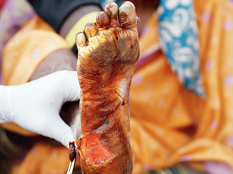 গত সোমবার মুম্বইয়ে মিছিলের পরে কৃষকের ক্ষতবিক্ষত পা।