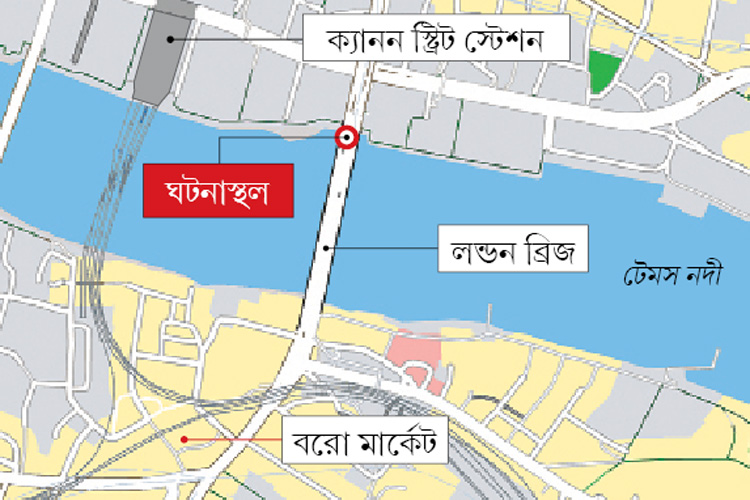 ২০১৭-র ৩ জুন এই লন্ডন ব্রিজের উপরেই তিন জঙ্গি একটি ভ্যান নিয়ে পিষে দিয়েছিল পথচারীদের। সেই হামলায় আট জন নিহত হয়েছিলেন, জখম হন ৪৮ জন। পুলিশের গুলিতে নিহত হয় জঙ্গিরা। পরে জানা যায়, আইএসের সঙ্গে যোগাযোগ ছিল ওই তিন জনের। তার তিন মাস আগে ওয়েস্টমিনস্টার ব্রিজের উপরে প্রথমে গাড়ির ধাক্কা দিয়ে, তার পরে ছুরি নিয়ে হামলা চালিয়েছিল এক জঙ্গি। সে বার আততায়ী-সহ ছ’জন নিহত হয়েছিলেন। আততায়ীকে আইএস মনোভাবাপন্ন ‘লোন উল্ফ’ বলে চিহ্নিত করেছিল লন্ডন পুলিশ।