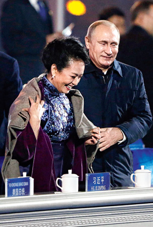এক জন ৬২ পেরোনো, তবু মহিলা-মহলে দারুণ জনপ্রিয়, এক রাষ্ট্রনেতা। অন্য জন এক প্রাক্তন পপ গায়িকা, আপাতত শুধুই দেশের ফার্স্ট লেডি। কূটনৈতিক মঞ্চে, কূটনীতি থেকে একটু দূরে, এই দু’জনের মধ্যে একটু উষ্ণতার বিনিময় ধরা পড়ে গেল ক্যামেরায়। সোমবার রাতে বেজিংয়ে এশীয়-প্রশান্ত মহাসাগরীয় শীর্ষ বৈঠকের এই মুহূর্তটির ভিডিও ক্লিপিং ছড়িয়ে পড়েছে ইন্টারনেটে। শীতের রাতে চিনের ফার্স্ট লেডিকে স্বস্তি দিতে একটা শাল এগিয়ে দিয়েছিলেন ভ্লাদিমির পুতিন। রুশ প্রেসিডেন্টের এ-হেন বদান্যতায় খুশি চেপে রাখতে পারেননি পেং লিউয়ানও। তাঁর স্বামী, প্রেসিডেন্ট শি চিনফিং তখন টেবিলেরই অন্য প্রান্তে মার্কিন প্রেসিডেন্ট বারাক ওবামার সঙ্গে গুরুগম্ভীর আলোচনায় ব্যস্ত। কিছু ক্ষণ পরে অবশ্য নিজের সহকারীর হাতে শালটি দিয়ে দেন পেং। পরে নেন কালো কোট। সদ্য বিবাহবিচ্ছিন্ন পুতিনের এই আচরণ নিয়ে মুখরোচক আলোচনায় সরগরম চিন। দেশের ইন্টারনেট থেকে সেই ভিডিও সরিয়েও দেওয়া হয়েছে।