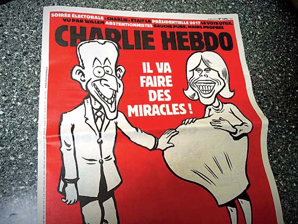 দেশের কনিষ্ঠতম প্রেসিডেন্ট হিসেবে আজ শপথ নিয়েছেন ৩৯ বছরের ইমানুয়েল মাক্রঁ। আর দিন চারেক আগেই মাক্রঁ আর তাঁর স্ত্রী ব্রিজিত মাক্রঁ-র একটি ব্যঙ্গচিত্র ছেপেছে ফরাসি পত্রিকা শার্লি এবদো। পত্রিকার প্রচ্ছদে দেখা যাচ্ছে অন্তঃসত্ত্বা স্ত্রীর পেটে হাত দিয়ে আছেন মাক্রঁ। প্রেসিডেন্টকে উদ্দেশ করে লেখা, ‘‘ইনি মির্যাকল ঘটাতে চলেছেন।’’ দেশের ভাবী ফার্স্ট লেডি সম্পর্কে এই ধরনের ব্যঙ্গচিত্র কুরুচিকর বলে মনে করছেন অনেকেই। বিতর্ক এতটাই গড়িয়েছে যে, বিষয়টি নিয়ে মুখ খুলেছেন ব্রিজিতের প্রথম পক্ষের মেয়ে তিফেইন ওজিয়ের। টুইট করেছেন খোদ ব্রিজিতও।