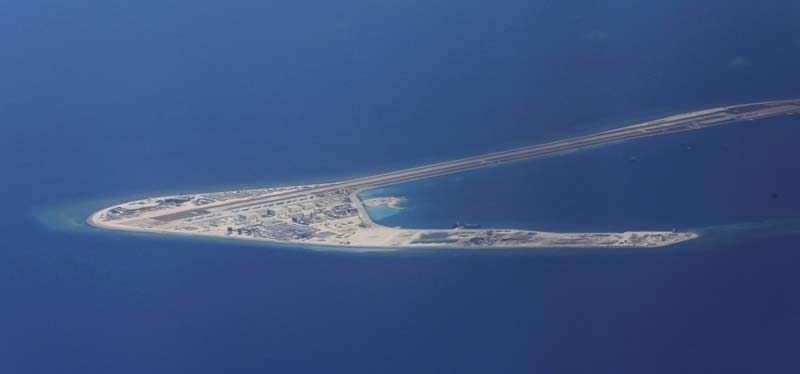 দক্ষিণ চিন সাগরের বিভিন্ন এলাকায় কৃত্রিম দ্বীপ বানিয়ে এ ভাবেই সেখানে পরিকাঠামো বাড়াচ্ছে চিন। ছবি: এপি।