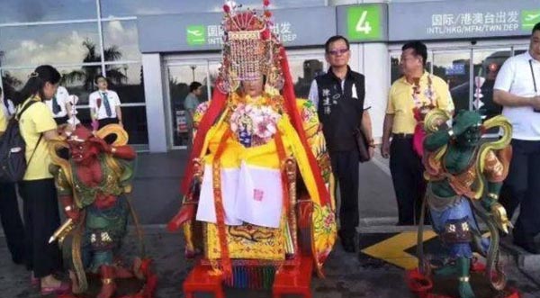 দামি বিমানের আসনে বসে আছেন মাজু, সমুদ্রের দেবতা। দুই পাশে তাঁর দুই রক্ষী, কুইয়ানলিয়ান এবং শানফেং। গায়ে তাঁর রংবেরঙের জামাকাপড়। দেবতার গায়ে রয়েছে অসংখ্য গয়না। ‘বসার’ সুবিধার জন্য বিমানের একেবারে প্রথম সিটে জায়গা দেওয়া হয়েছে তাঁকে। বিজনেস ক্লাসের আসনে মাজুর সেই ছবি তুলে সোশ্যাল মিডিয়ায় পোস্ট করেন যাত্রীরা। মুহূর্তে তা ভাইরাল হয়ে যায়।