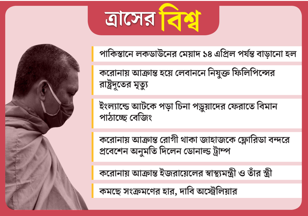 বুধবার আমেরিকাতেই মৃত্যু হয়েছে ৮৮৪ জনের। সব মিলিয়ে আমেরিকায় মৃতের সংখ্যা ৫ হাজার ছাড়িয়ে গিয়েছে। সেখানে আক্রান্তের সংখ্যা ২ লক্ষ ১৬ হাজার। ভয়াবহ পরিস্থিতি স্পেনেরও। সেখানে ২৪ ঘণ্টায় মৃত্যু হয়েছে ৮৬৪ জন মানুষের। সে দেশে এ পর্যন্ত মৃত্যু হয়েছে মোট ৯ হাজারের বেশি মানুষের। ইংল্যান্ডে এক দিনে মারা গিয়েছেন ৫৬৩ জন। সেখানে মোট দু’হাজারের বেশি মানুষ মারা গিয়েছেন এ পর্যন্ত। দেশের পরিস্থিতি দেখে ইংল্যান্ডের প্রধানমন্ত্রী বরিস জনসন বলেই ফেলেছেন, ‘‘দুঃখজনক, খুবই দুঃখজনক ঘটনা।’’ বরিস নিজেও করোনায় আক্রান্ত হয়েছেন।