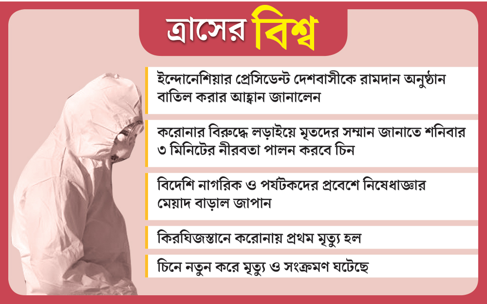 আক্রান্তের নিরিখে সারা বিশ্বে শীর্ষ স্থানে রয়েছে আমেরিকা। এখনও পর্যন্ত সেখানে প্রায় আড়াই লক্ষ আক্রান্ত হয়েছেন। তার পরেই রয়েছে ইটালি। সে দেশে আক্রান্তের সংখ্যা ১ লক্ষ ছাড়িয়ে গিয়েছে। তার পরেই রয়েছে স্পেন (১ লক্ষ ১২ হাজার ৬৫ জন), জার্মানি (৮৪ হাজার ৭৯৪), চিন (৮২ হাজার ৪৬৪)। বুধবার ৮০ হাজারেরও বেশি মানুষ আক্রান্ত হয়েছেন। যা এক দিনে আক্রান্তের নিরিখে রেকর্ড। ওই দিন মৃত্যু হয়েছে ৬ হাজার মানুষের। মৃত্যু সংখ্যায় বুধবারই নতুন মাইলস্টোন ছুঁয়ে ফেলেছে আমেরিকা, স্পেন ও ব্রিটেন।
