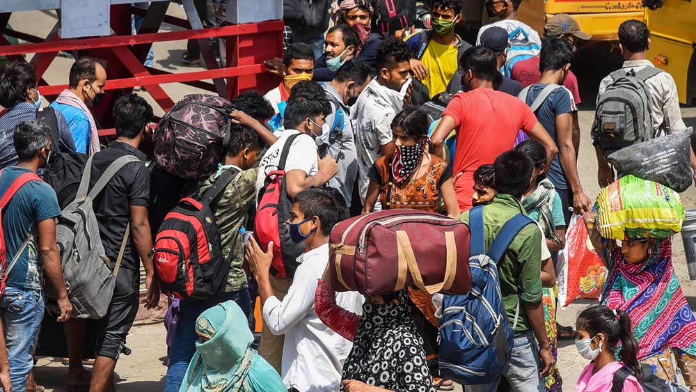 মানুষের ভিড় খুবই পছন্দ কোভিড-১৯-এর। বিহারের দানাপুর রেলস্টেশনে পরিযায়ী শ্রমিকরা। ছবি-পিটিআই।