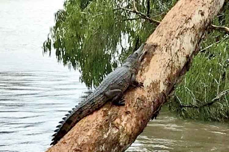 আশ্রয়: বন্যায় চারদিক থইথই। তাই জল ছেড়ে গাছবাসী কুমির। কুইন্সল্যান্ডের টাউনসভিলে। ছবি: টুইটার