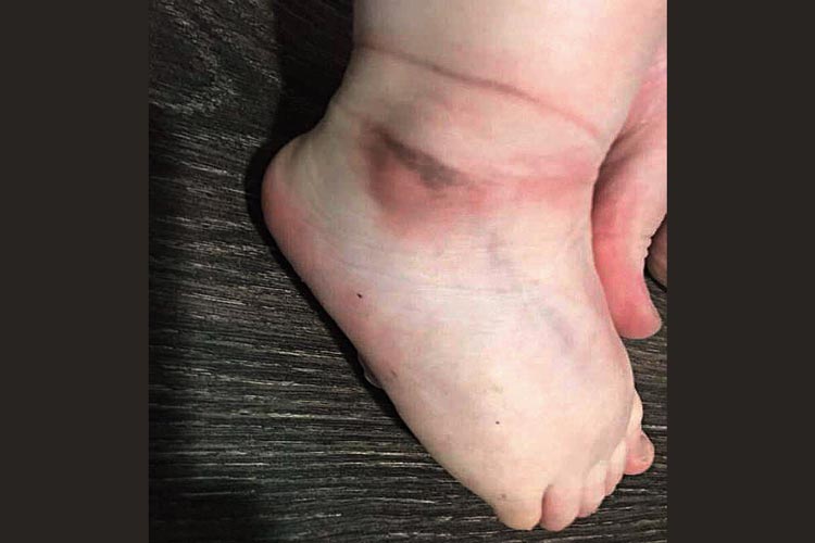 সকালে সতেরো মাসের শিশুটিকে ডে-কেয়ার সেন্টারে রেখে কাজে গিয়েছিলেন মা। কাজ সেরে মেয়েকে নিতে এসে দেখেন, ছোট্ট ফুটফুটে পা দু’টো জুতো সমেত প্লাস্টিকের মাস্কিং টেপ দিয়ে আঁটোসাঁটো করে বাঁধা। রক্ত জমে কালশিটে পড়ে গিয়েছে একরত্তির পায়ে।
