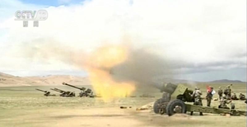 তিব্বতে চিনা সেনার সাম্প্রতিক লাইভ ফায়ার ড্রিল। চিনের সরকারি টেলিভিশন চ্যানেলই এই ছবি প্রকাশ করেছে। ছবি: এপি।