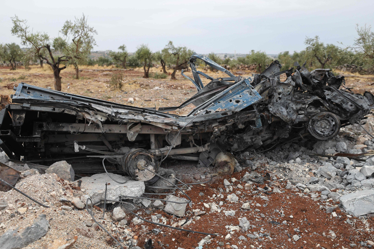 বাগদাদিকে মারতে মার্কিন হামলায় গুঁড়িয়ে গিয়েছে গাড়ি। ছবি - এএফপি।