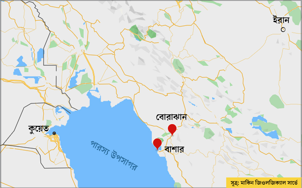 বাশার থেকে বোরাঝানের দূরত্ব প্রায় ৭০ কিলোমিটার। অনেকের সন্দেহ, লাগোয়া ইরাকে মোতায়েন মার্কিন সেনাবাহিনীর উপর ইরানের ক্ষেপণাস্ত্র হানাদারির অভিঘাতেই এই ঘটনা ঘটেছে। তবে মার্কিন ভূতত্ত্ব সর্বেক্ষণের বক্তব্য, মাটির যে গভীরতায় ওই ভূকম্পনে উৎপন্ন হয়েছে, তা প্রাকৃতিক ভূমিকম্প্ না হলে সম্ভব নয়। একই মাত্রার এবং একই গভীরতায় ভূকম্পন গত ডিসেম্বরেও হয়েছিল।