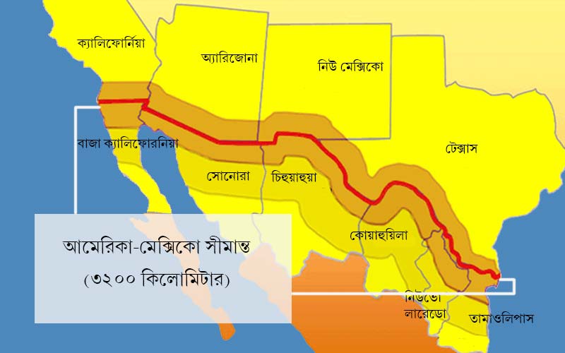 যুক্তরাষ্ট্র এবং মেক্সিকোর মধ্যে প্রায় ৩২০০ কিলোমিটার দীর্ঘ সীমান্ত