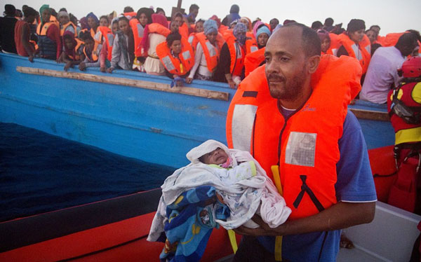 সেই সময়েই দূরে ইতালীয় উপকূলরক্ষী বাহিনীর উদ্ধারকারী নৌকা নজরে আসে সকলের। প্রাণ বাঁচাতে এর পরেই হুড়োহুড়ির মাত্রা আরও বেড়ে যায়। ভূমধ্যসাগরের জলে ঝাঁপ দিতেও অনেকে দ্বিধা করেননি। মাঝ সমুদ্র থেকেই প্রায় দু’হাজার শরণার্থীদের উদ্ধার করা হয়। তাদের মধ্যে প্রচুর শিশুও ছিল। ছিল পাঁচ দিনের ওই শিশুটি, তার দাদা-মা-বাবাও। সদ্যোজাত শিশুটিকে তার বাবার হাতে তুলে দেন উদ্ধারকারী বাহিনীর সদস্যেরা। তার মা ও যমজ দাদাদের চিকিত্সার জন্য উড়িয়ে আনা হয় ইতালিতে।