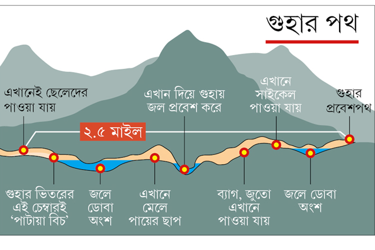 এরপরই গুহার আরও ভিতরে যাওয়ার পর তাদের খোঁজ মেলে। যোগাযোগ করা সম্ভব হয়। জানা যায় গুহা মুখ থেকে প্রায় চার কিলোমিটার ভিতরে ফুটবলাররা একটি উঁচু জায়গায় আশ্রয় নিয়েছে। ওই জায়গাটি মাটির উপর থেকে প্রায় এক হাজার মিটার গভীরে।