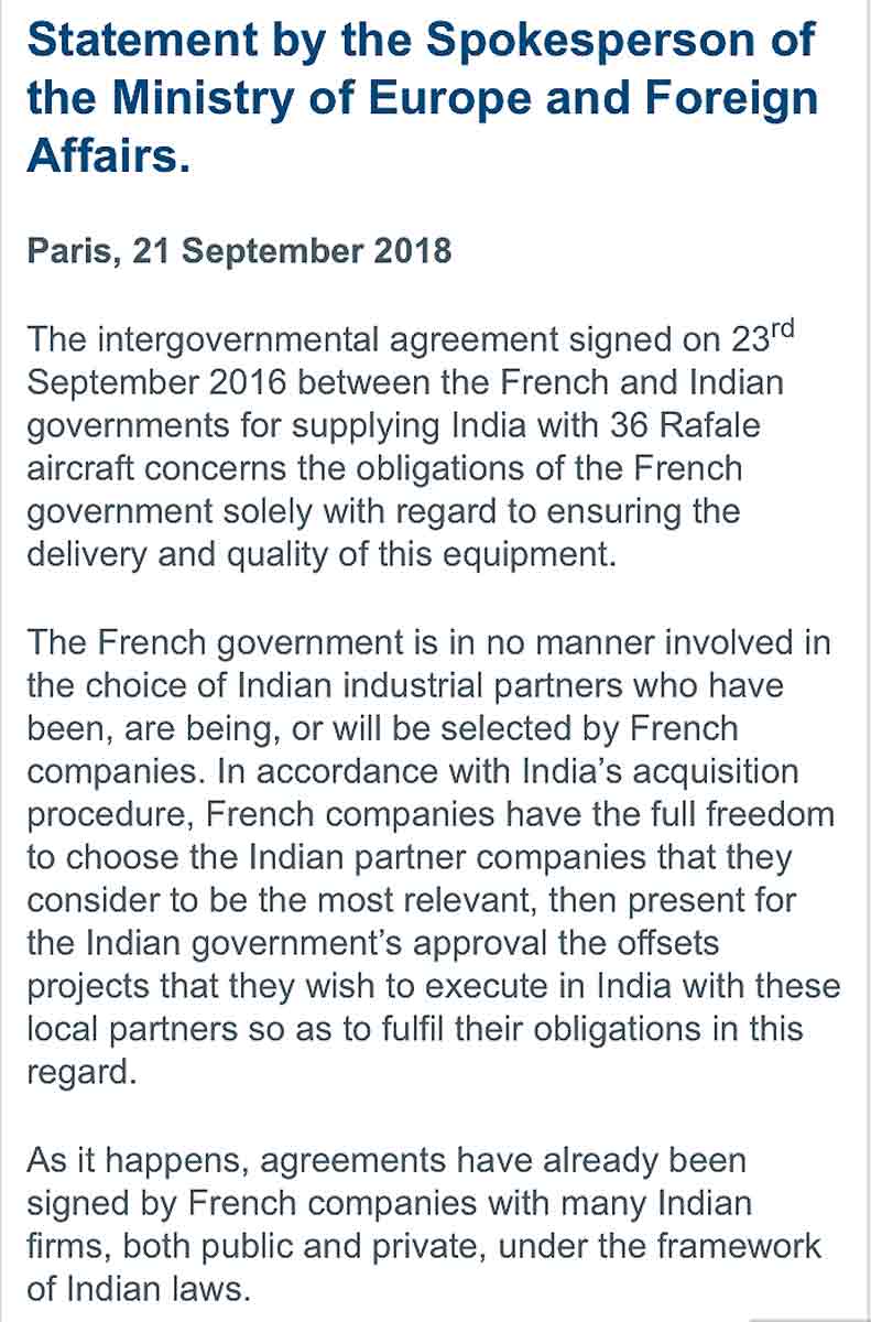 রাফাল: ফরাসি সরকারের তরফে দেওয়া বিবৃতি।