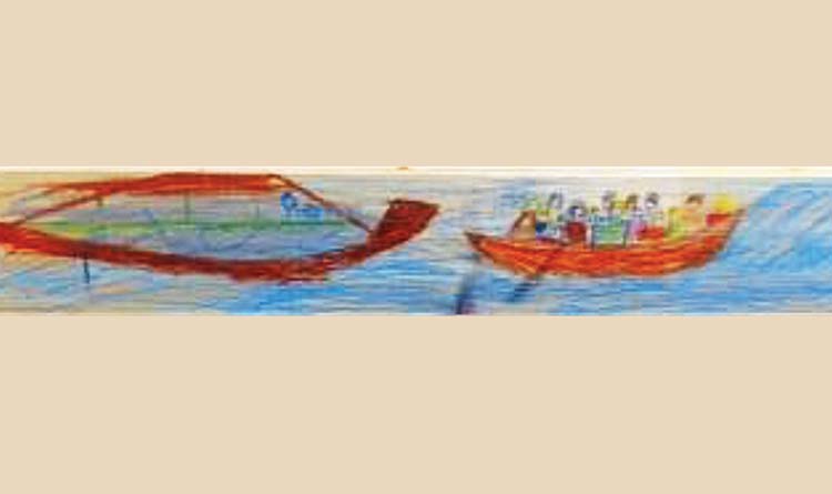 আর শরণার্থী শিশুরা? গার্ট্রুড জানালেন, শিশুরা সহজে মিশে যেতে পারে এটা যেমন ঠিক, তেমন নিজের আশ্রয় ছাড়ার যন্ত্রণাও তাদের থাকে। চলে আসার আগে একটা ছবি দেখালেন গার্ট্রুড। যে বাঙ্কারে পর পর শুতে হয়, তার মাঝের চিলতে জায়গায় সিরিয়ার এক শিশু ছবি এঁকেছে। যাত্রিবোঝাই নৌকার পাশে উদ্ধারকারী নৌকা, ঢেউ। যে দেশ সে ছেড়ে এসেছে, সেখানে ফুল-পাতা-বৃষ্টি। যুদ্ধ-বোমা-গুলি নয়, নিজের দেশ তার স্মৃতিতে এখনও সুন্দর!