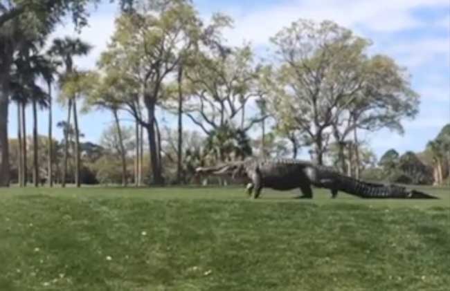 গল্ফ টুর্নামেন্ট চলছে। গল্ফার ব্যস্ত নিজের পরবর্তী শট নেওয়ার জন্য। অনেকটা দূরে দাঁড়িয়ে খেলা দেখছিলেন জনা কয়েক দর্শক। তাঁদেরই মধ্যে একজন ক্যারি মুরিস একটা দৃশ্য দেখে রীতিমতো চমকে উঠলেন। নিজের চোখকেই যেন বিশ্বাস করতে পারছিলেন না মুরিস। গল্ফের শটের ছবি তোলার জন্য মোবাইল হাতে ধরাই ছিল। টুক করে একটা ছবি তুলে নিলেন তিনি। তার পরই চিত্কার করে ওঠেন গল্ফারদের সতর্ক করার জন্য। চিত্কার শুনে ঘুরে তাকাতেই গল্ফারদের চক্ষু চড়কগাছে! গল্ফ কোর্সে হেঁটে বেড়াচ্ছে দৈত্যাকার কুমির! গুটি গুটি পায়ে এগিয়ে আসছে তাঁদেরই দিকে! খেলা তখন মাথায় উঠেছে।