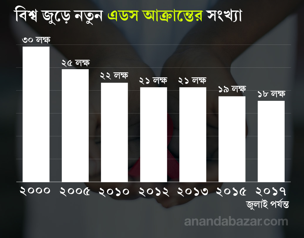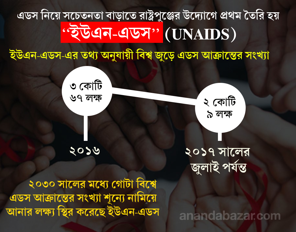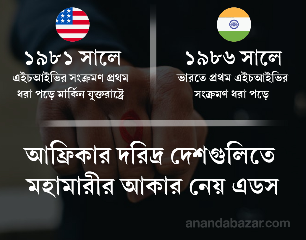 আজ বিশ্ব এডস দিবস। এডস সম্পর্কে সচেতনতা বাড়াতে প্রতি বছর বিশ্বজুড়ে এই দিনটি পালন করা হয়। মানব সভত্যায় একসময় মারণ রোগ ক্যানসারকে ছাপিয়ে গিয়েছিল এডস বা এইচআইভি-র সংক্রমণ। গত শতাব্দীর আশির দশকের গোড়ায় আমেরিকায় প্রথম এডস ধরা পড়ে। তার পরে মহাদেশ আর মহাসাগরের সীমানা পেরিয়ে ছড়িয়ে পড়ে এই মারণ রোগ। আজ বিশ্বজুড়ে সচেতনতা অনেক বেড়েছে। ধীরে ধীরে কমছে এডস আক্রান্তের সংখ্যা। সচেতনতা বাড়াতে নেওয়া হয়েছে নানা কর্মসূচি। ২০৩০ সালের মধ্যে এডস নির্মুল করার লক্ষ্যেই এগোচ্ছে গোটা বিশ্ব। গ্রাফিক্স:সৌভিক দেবনাথ।