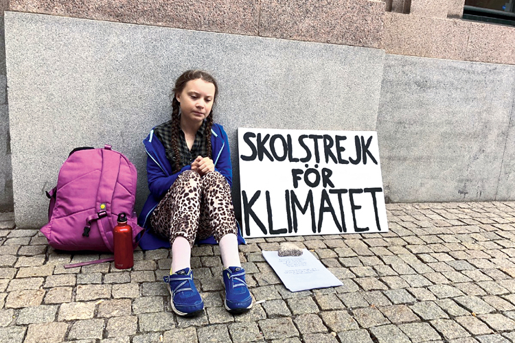 গত বছর অগস্ট মাসে সুইডিশ পার্লামেন্টের বাইরে প্ল্যাকার্ড নিয়ে একা বসে রয়েছে গ্রেটা। ফাইল চিত্র
