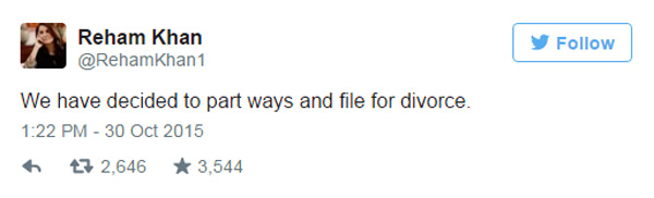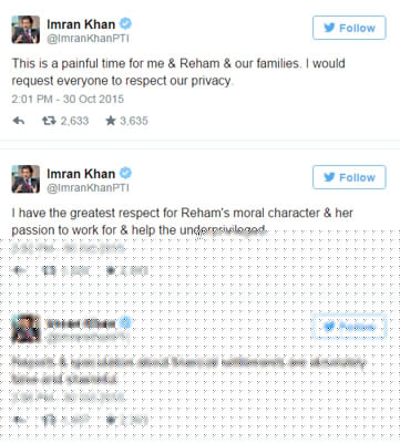ইমরানের রাজনৈতিক দল পাকিস্তান তেহরিক-ই-ইনসাফ মুখপাত্র নইমুল হক বলেন, ‘‘হ্যাঁ, ডিভোর্য়ের খবর সত্যি। ইমরান ও রেহম আলাদা হওয়ার সিদ্ধান্ত নিয়েছেন। তবে দু’জনেই মিডিয়াকে অনুরোধ জানিয়েছেন যেন তাঁদের ব্যক্তিগত জীবনের ব্যাপারে সম্মান রাখা হয়।’’