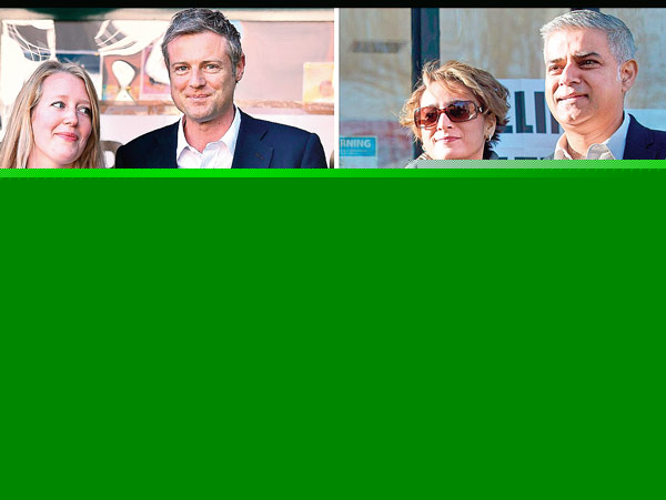 সস্ত্রীক দুই প্রতিদ্বন্দ্বী। জ্যাক গোল্ডস্মিথ (বাঁ দিকে) ও সাদিক খান। —ফাইল চিত্র।