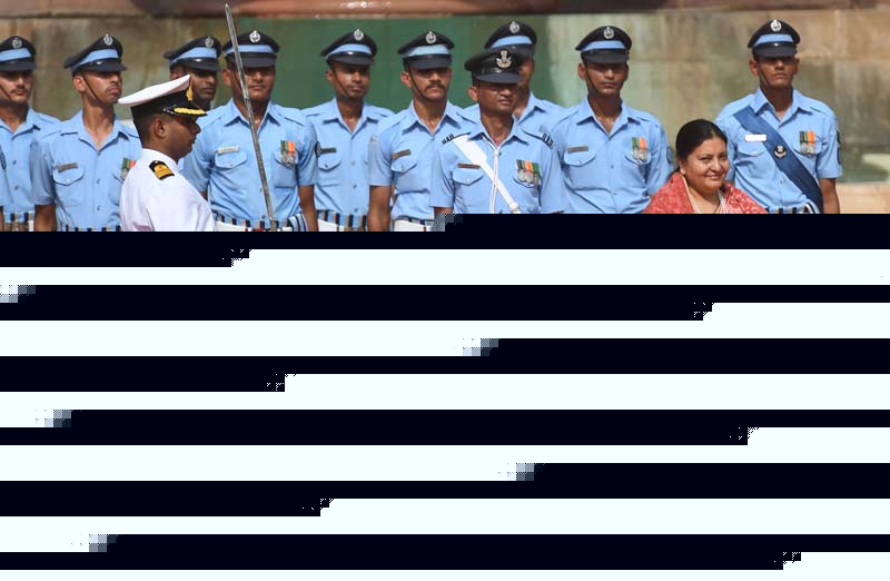 গত মাসেই ভারত সফরে এসেছিলেন নেপালের প্রেসিডেন্ট বিদ্যাদেবী ভাণ্ডারী। তাঁকে উষ্ণ অভ্যর্থনা জানিয়েছে নয়াদিল্লি। —ফাইল চিত্র।