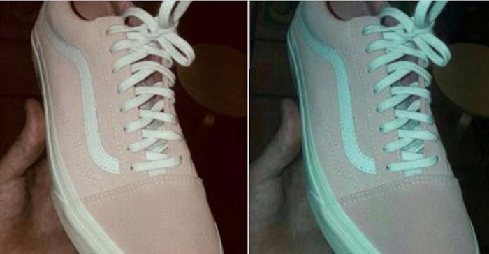 পারলেন না তো? না ধূসর-নীল নয়। আসলে এই জুতোর রং গোলাপি-সাদা। পুরোটাই আলোর কারসাজি। ২০১৫ সালে একটি সোনালি-সাদা গাউন নিয়ে বেশ মাতামাতি হয়েছিল ইন্টারনেটে। নাম দেওয়া হয়েছিল ‘দ্য ড্রেস ডিবেট’। বিষয়টা ছিল এই জুতোর মতোই। রঙের ধাঁধাঁ। পরে জানা গিয়েছিল আদতে গাউনের রং সাদা-কালো।