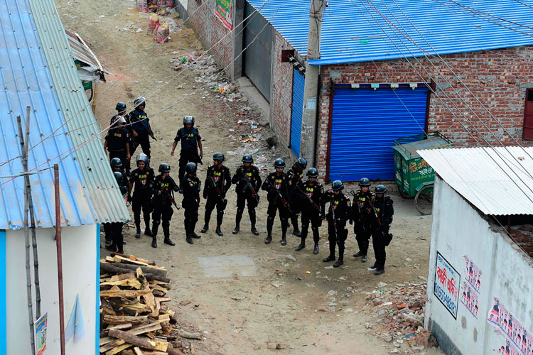 ঢাকায় সোমবার জঙ্গিদমন অভিযান। ছবি: এএফপি।