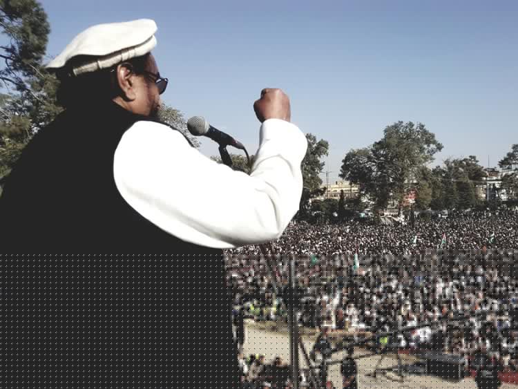 রাওয়ালপিন্ডিতে জনসভায় ভাষণ দিচ্ছে হাফিজ। ছবি: টুইটার।