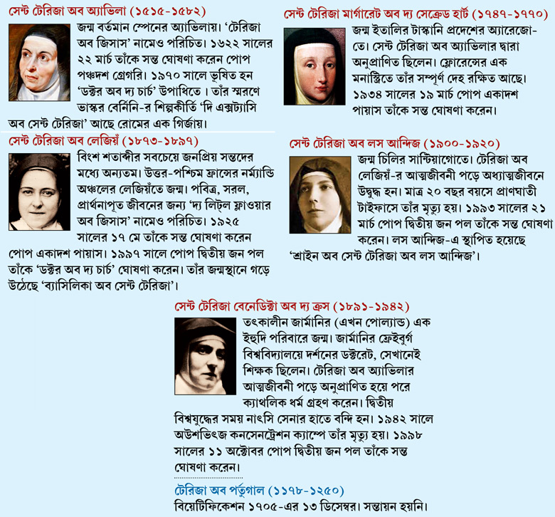 সন্ত হলেন মাদার টেরিজা। অনুষ্ঠানে ভক্তদের ভিড়ে ভরে উঠেছিল ভ্যাটিকানের সেন্ট পিটার্স স্কোয়ার। আসুন দেখে নেওয়া যাক অন্য টেরিজাদের যাঁরা সন্ত হয়েছেন এর আগে।