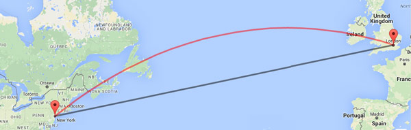 আকাশ-পথে লন্ডন থেকে নিউ ইয়র্ক।