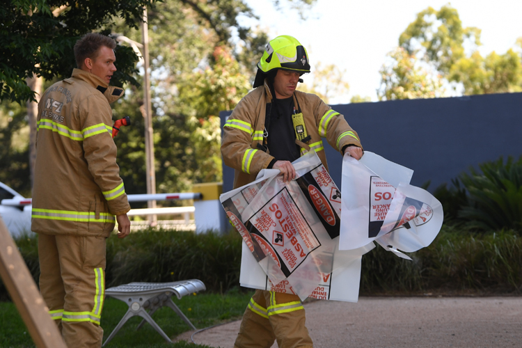 মেলবোর্নে দক্ষিণ কোরিয়ার দূতাবাসের ভিতর থেকে সন্দেহজনক প্যাকেট নিয়ে বাইরে বেরিয়ে এসেছেন এক দমকল কর্মী। ছবি: এপি