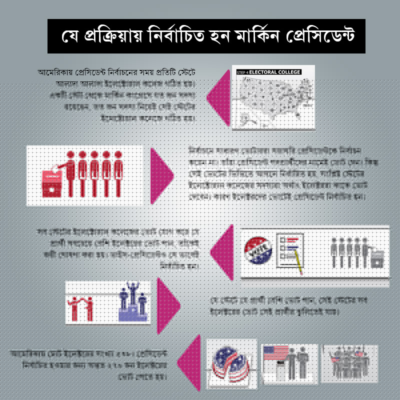 আমেরিকার প্রেসিডেন্ট নির্বাচনে ভোটগ্রহণ শুরু হয়ে গিয়েছে। ৫০টি স্টেট এবং ডিস্ট্রিক্ট অব কলম্বিয়ায় ব্যালটে ছাপ মারতে শুরু করেছেন সাধারণ ভোটদাতারা। কিন্তু এই সাধারণ ভোটারদের ভোটে কিন্তু সরাসরি প্রেসিডেন্ট নির্বাচিত হবেন না। প্রেসিডেন্ট আসলে নির্বাচিত হবেন আমেরিকার ৫০ প্রদেশ এবং ডিস্ট্রিক্ট অব কলম্বিয়ার মোট ৫১টি ইলেক্টোরাল কলেজের সদস্যদের ভোটে।