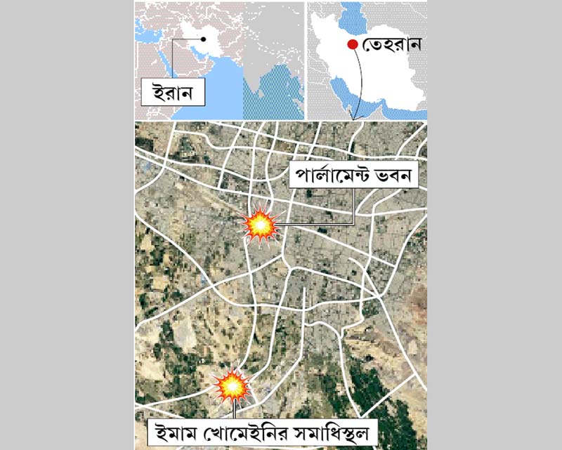 আজ রাজধানী তেহরানে পার্লামেন্ট মজলিশ এবং দেশের প্রয়াত শীর্ষ নেতা আয়াতোল্লা রৌহল্লা খোমেইনির সমাধিক্ষেত্রে হানায় নিহত হয়েছে ১২ জন। আহত কমপক্ষে ৩৯ জন। দু’টি হামলারই দায় স্বীকার করেছে ইসলামি জঙ্গি