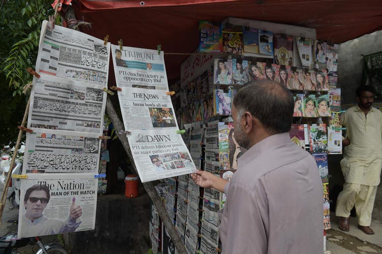 ইসলামাবাদের একটি সংবাদপত্রের স্টল। ছবি: এএফপি